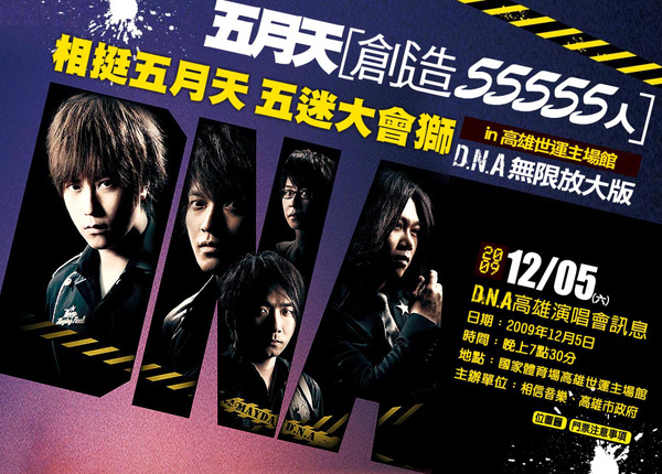 隨後官方立即宣佈於12/5在高雄世運主場館舉辦五月天[創造55555人]演唱會"DNA無限放大版"