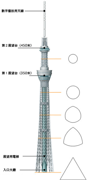 而且,從塔腳部到塔頂部,基本造形由三角形向圓形變化,