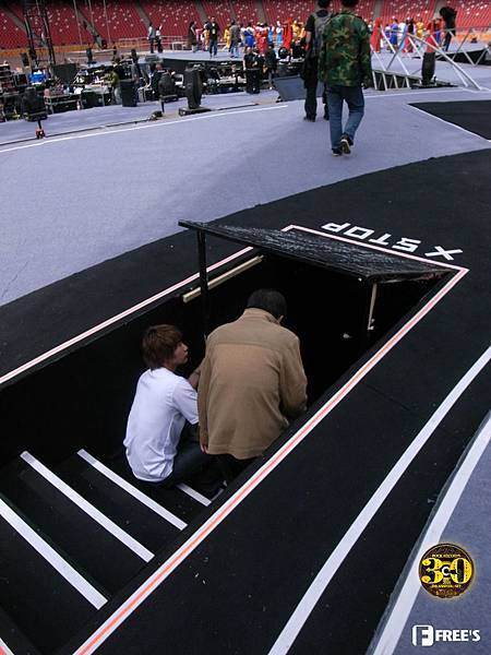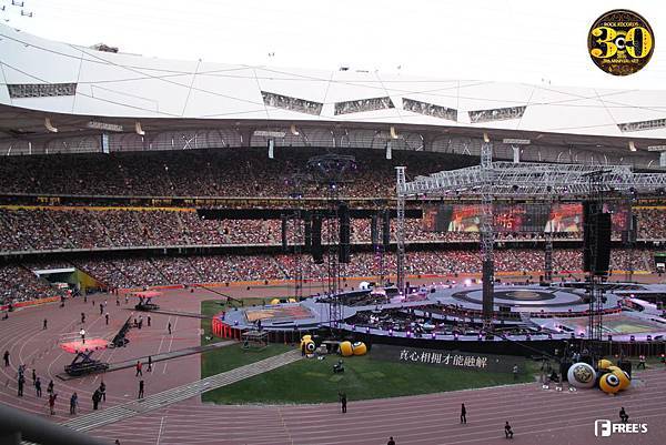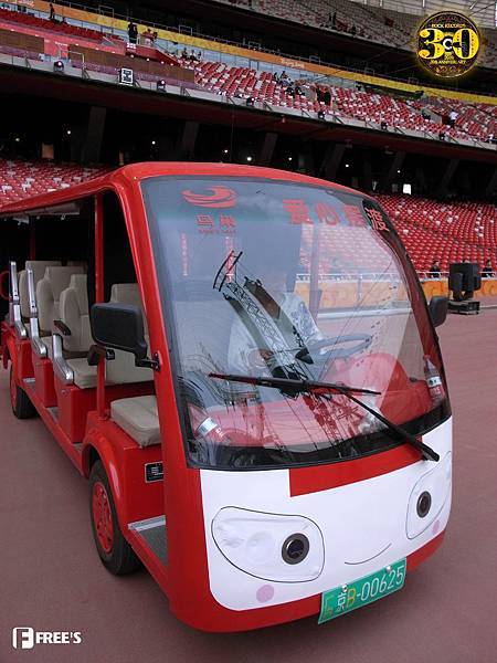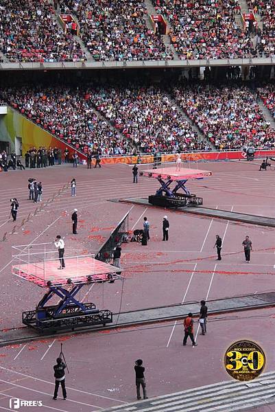 因為鳥巢實在太大…藝人從休息室距離舞台有一段距離…也為了保持登場前的神祕感..