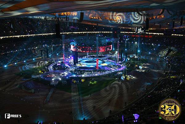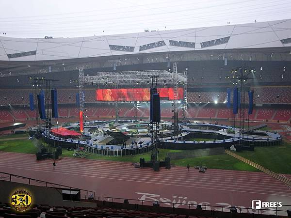 話說因為這顆球..也讓我們初期設計舞台工程時..發現..鳥巢的中央底下..