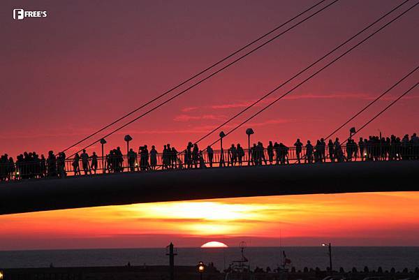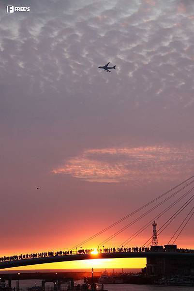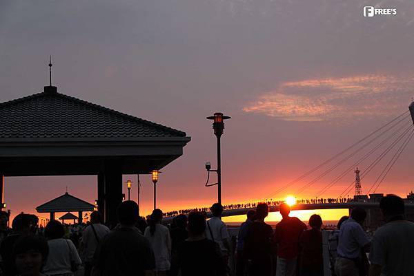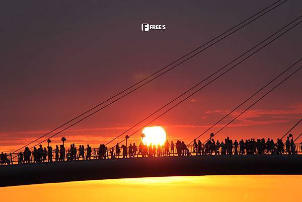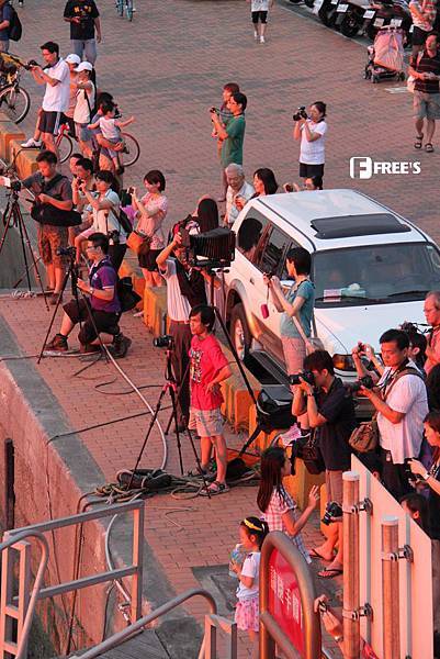 現場一起捕捉夕陽的民眾,也形成一個有趣的畫面!