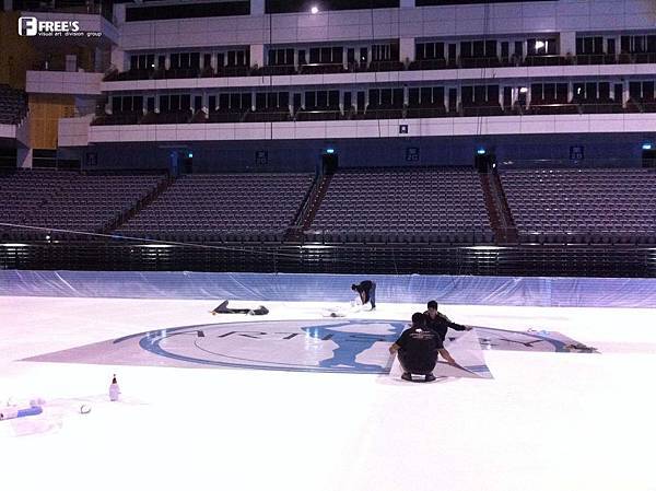 按照設計圖的想像..架構出實際的舞台…我們果真將小巨蛋變成了冰上世界了…