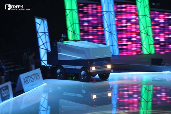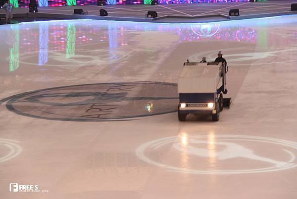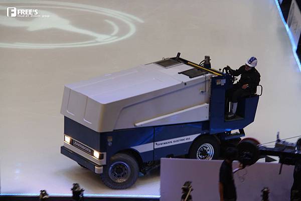 除了開場前的維護,,於演出中場…再度上場,清潔整理冰面..!