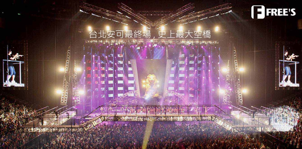 舞台搭滿巨蛋的整個橫面,綿延不絕的到達最邊緣,這項紀錄,隨著巨蛋的法規限定,即使有再多的經費